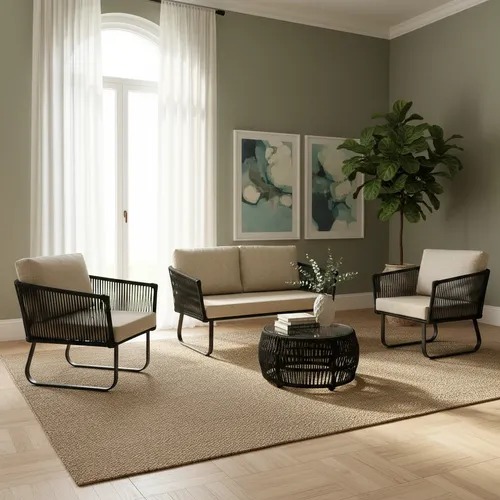 O conjunto de Sofá Summer foi desenvolvido com design moderno e clean, seu diferencial está em seu acabamento em corda Náutica, o que torna o produto indicado para ambientes internos e externos, sua proposta consiste em deixar o ambiente tranquilo e agradável.